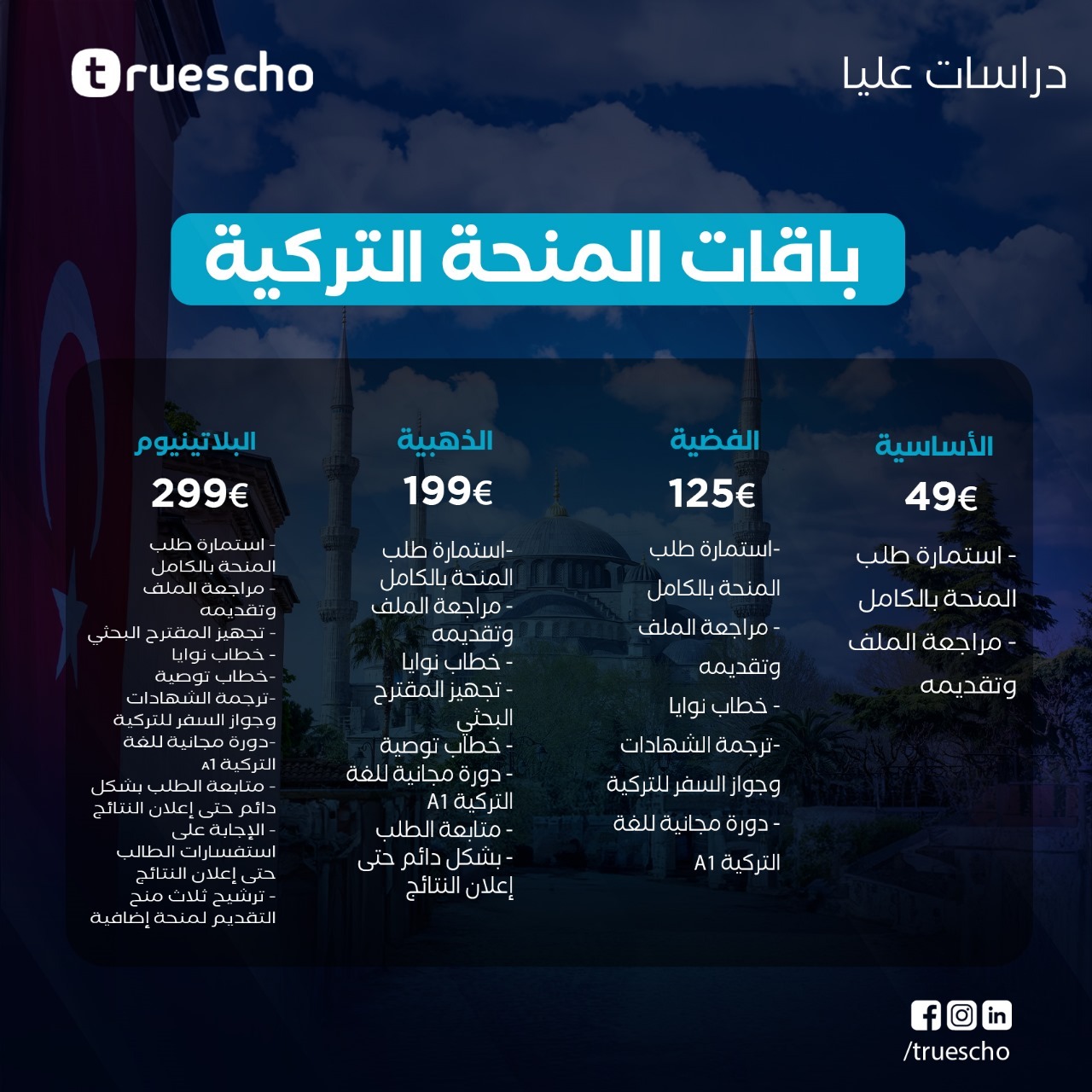 الباقة البلاتينيوم الشاملة للمنحة التركية تشمل: